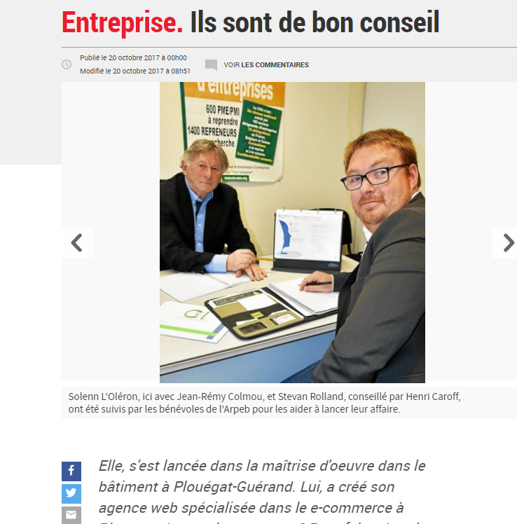 De son côté le Télégramme Morlaix met en avant le parcours de création d'entreprise avec l'Arpeb, accompagnement dont à bénéficier Com'1 Bonne idée.