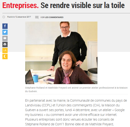 Ouest France a rencontré Com'1 Bonne Idée pour présenter l'activité d'agence Web et e-commerce en Bretagne et pour évoquer l'espace de Coworking de Plouvorn.
